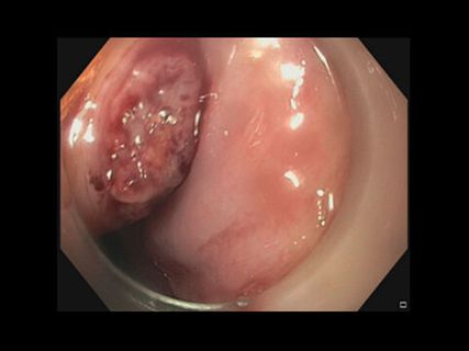 Ein 60-jähriger Mann wird aufgrund einer transfusionspflichtigen Anämie (Hb 7,3g/dl) und Meläna mit der Rettung in die Notaufnahme gebracht. Initial präsentiert sich der Patient mit stabilen Vitalparametern. Nach Etablierung eines PPI-Perfusors, Erythromycin-Gabe und Anforderung von Erythrozytenkonzentraten wird eine Notfallgastroskopie durchgeführt, in der sich anfangs bis auf blutige Auflagerungen im Magen und Dünndarm keine Auffälligkeiten zeigen. Erst beim Rückzug ist eine das Lumen einengende Vorwölbung im proximalen Ösophagus auffällig. Da in diesem Bereich die gesamte Zirkumferenz nicht eingesehen werden kann, wird dieses Areal nochmals mithilfe einer transparenten Kappe inspiziert. Es zeigt sich eine kleine, pulsierende exophytische Läsion (Abb.1). Bei St.p. Stentimplantation in die Aorta wird primär an eine aortoösophageale Fistel (AÖF) gedacht. Dieser Verdacht kann in der CT-Angiografie bestätigt werden und es erfolgt die Verlegung an eine Herzchirurgie mit Stentgraftverlängerung.